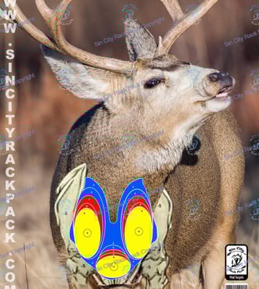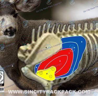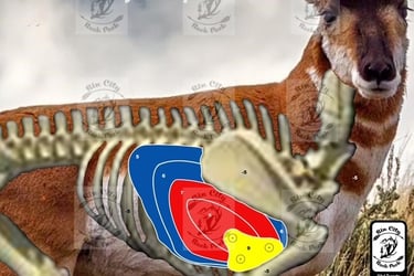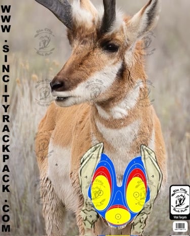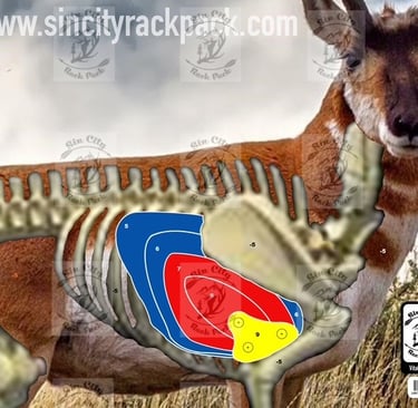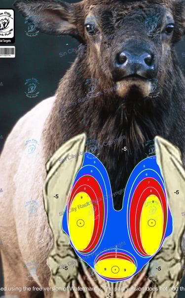 We will be shooting our Elk, Antelope and mule deer targets broadside and frontal with negative points if you miss the vitals. (See pics)