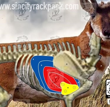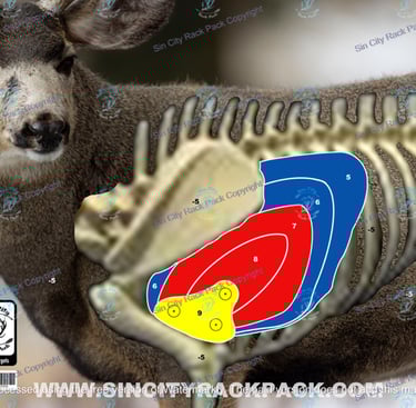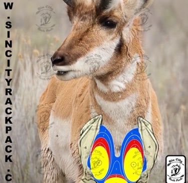 We will be shooting our Elk, Antelope and mule deer targets broadside and frontal with negative points if you miss the vitals. (See pics)